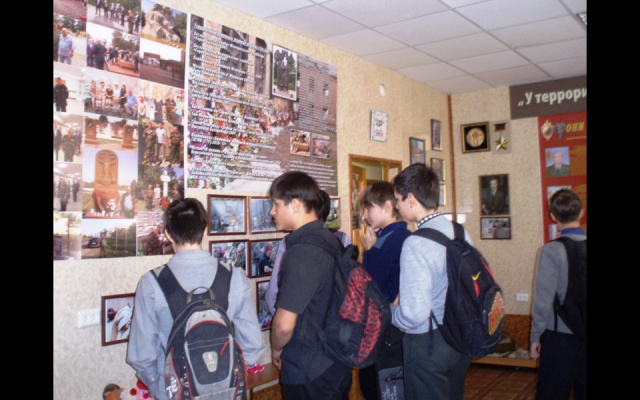 28 января в музее Беслана, открытом в средней школе № 123 Калининского района города Челябинска, состоялся урок мужества для старшеклассников школы и студентов Челябинского государственного промышленно-гуманитарного техникума имени Героя России Александра Яковлева.