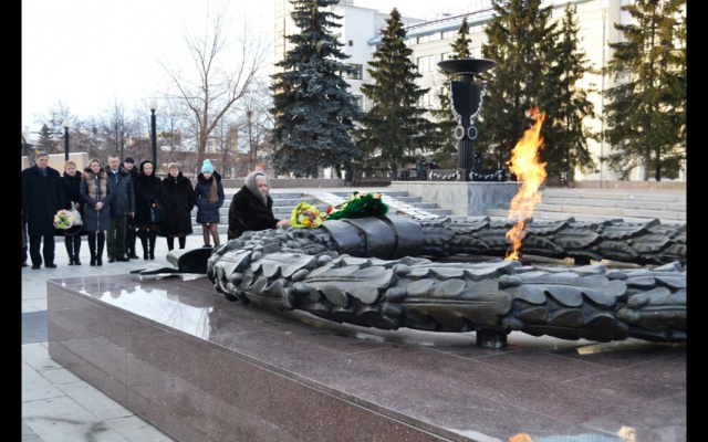 После церемонии награждения семьи Героев Великой Отечественной войны и Северного Кавказа возложили цветы к Вечному Огню и к мемориалу "Доблестным сынам Отечества".