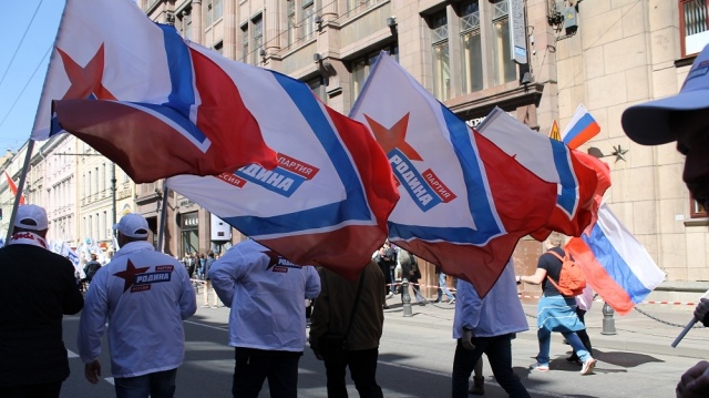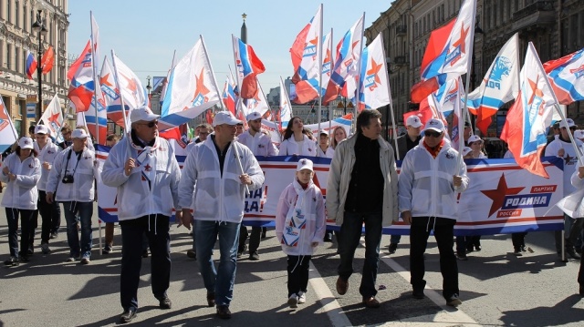 Колонна партии "РОДИНА" на первомайской демонстрации в Санкт-Петербурге.