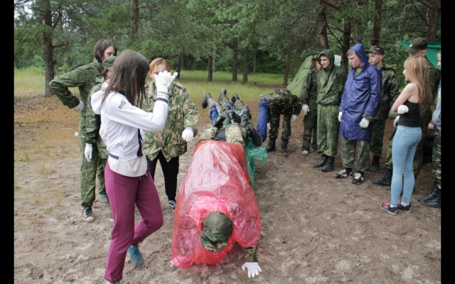 В лагере участвует около 30 воспитанников военно-патриотических клубов, юношей и девушек.