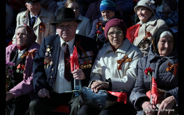 Торжественное шествие открывали ветераны ВОВ. В праздничном мероприятии приняли участие около 30 тысяч человек.